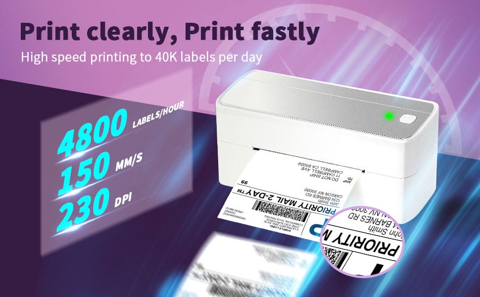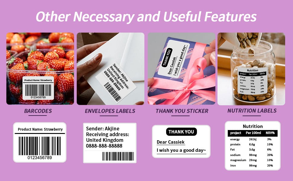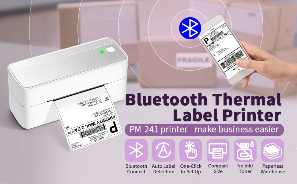 The ASprink PM-241BT thermal printer can automatically detect any label and adjust its settings accordingly. The printer can print custom-size labels, address labels, logo labels, envelope labels, thank you stickers, nutrition labels, and barcodes very efficiently and easily.