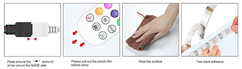 The Jadisi Led Strip Lights is easy to cut along the mark with just a pair of scissors. You can cut the strip according to your desired length. Join them easily and see that the arrows on each strip face each other.